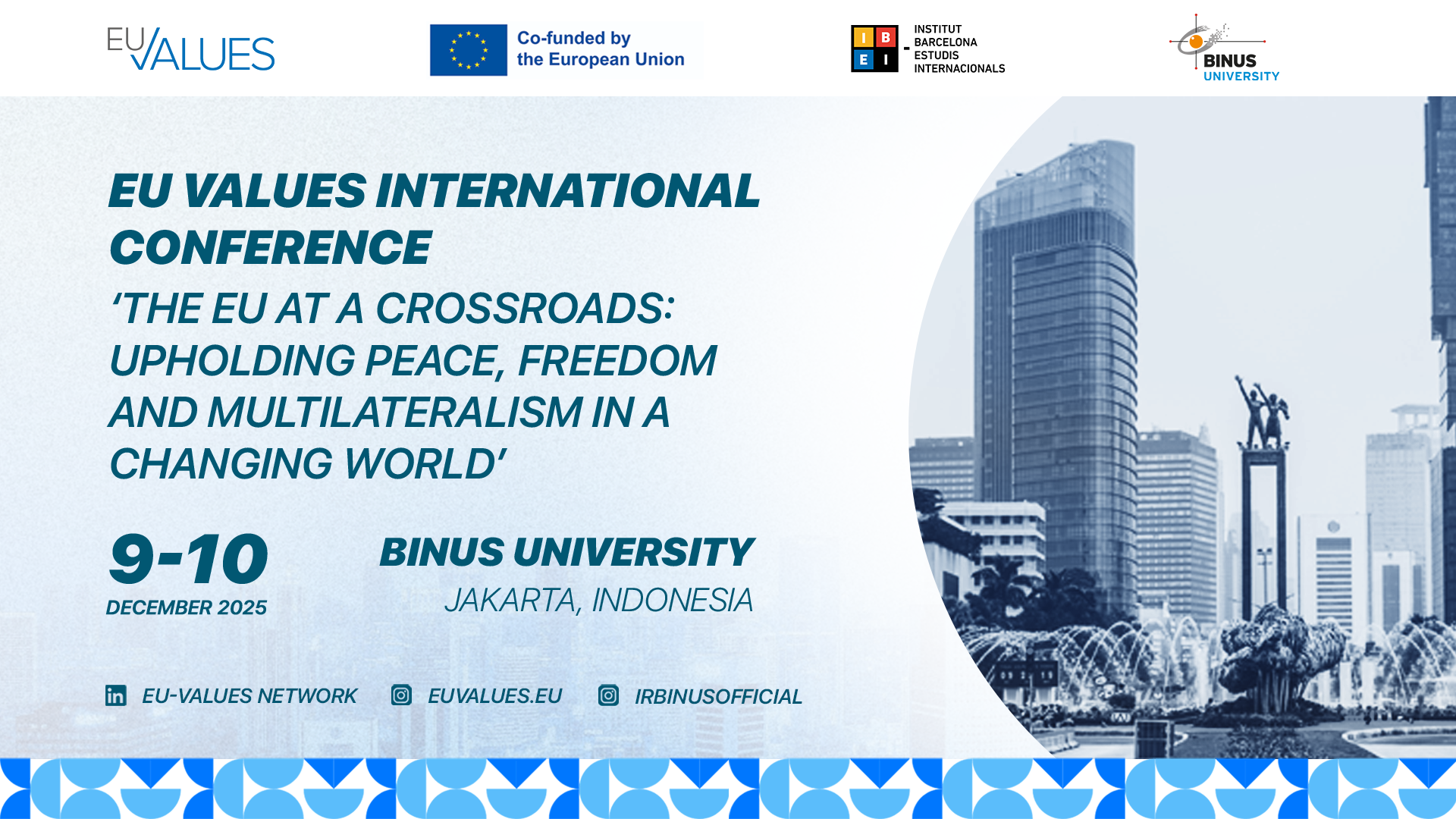 This 8–10 December 2025, the EU-VALUES Network gathers in Jakarta, Indonesia, for our international conference “The EU at a Crossroads: Upholding Peace, Freedom and Multilateralism in a Changing World.” Hosted by BINUS University, the event brings together scholars and practitioners from across the globe to explore the EU’s role in world affairs at a moment of profound geopolitical transformation. Follow us online for live updates during the conference, and if you can’t join us in Jakarta, selected sessions will be livestreamed so you can hear from the experts in real time. See the full agenda for details.